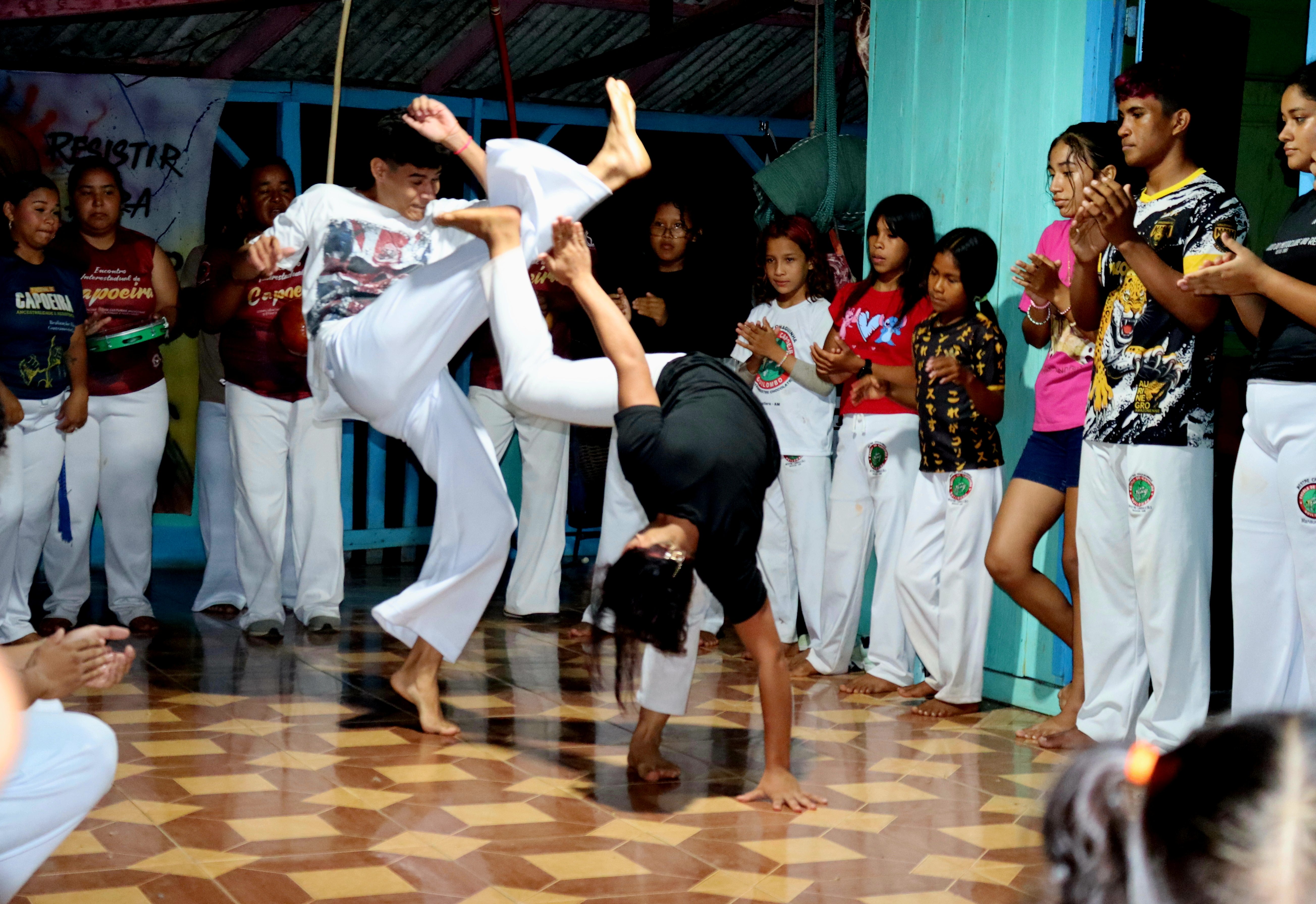 No dia 12 de outubro pela parte da manhã aconteceu uma roda de conversa com o Professor Doutor Gilson Gil, docente da UFAM de Itacoatiara, e com a professora Silvia Melo Moraes, discente do Programa de Pós-Graduação em Sociedade e Cultura na Amazônia (PPGSCA) da UFAM de Manaus. Foram abordados temas de suma importância, como a da participação dos jovens na resistência pelos direitos quilombolas e questões relacionadas à identidade. Além disso, foi um momento de compartilhar histórias dos processos de luta da comunidade.