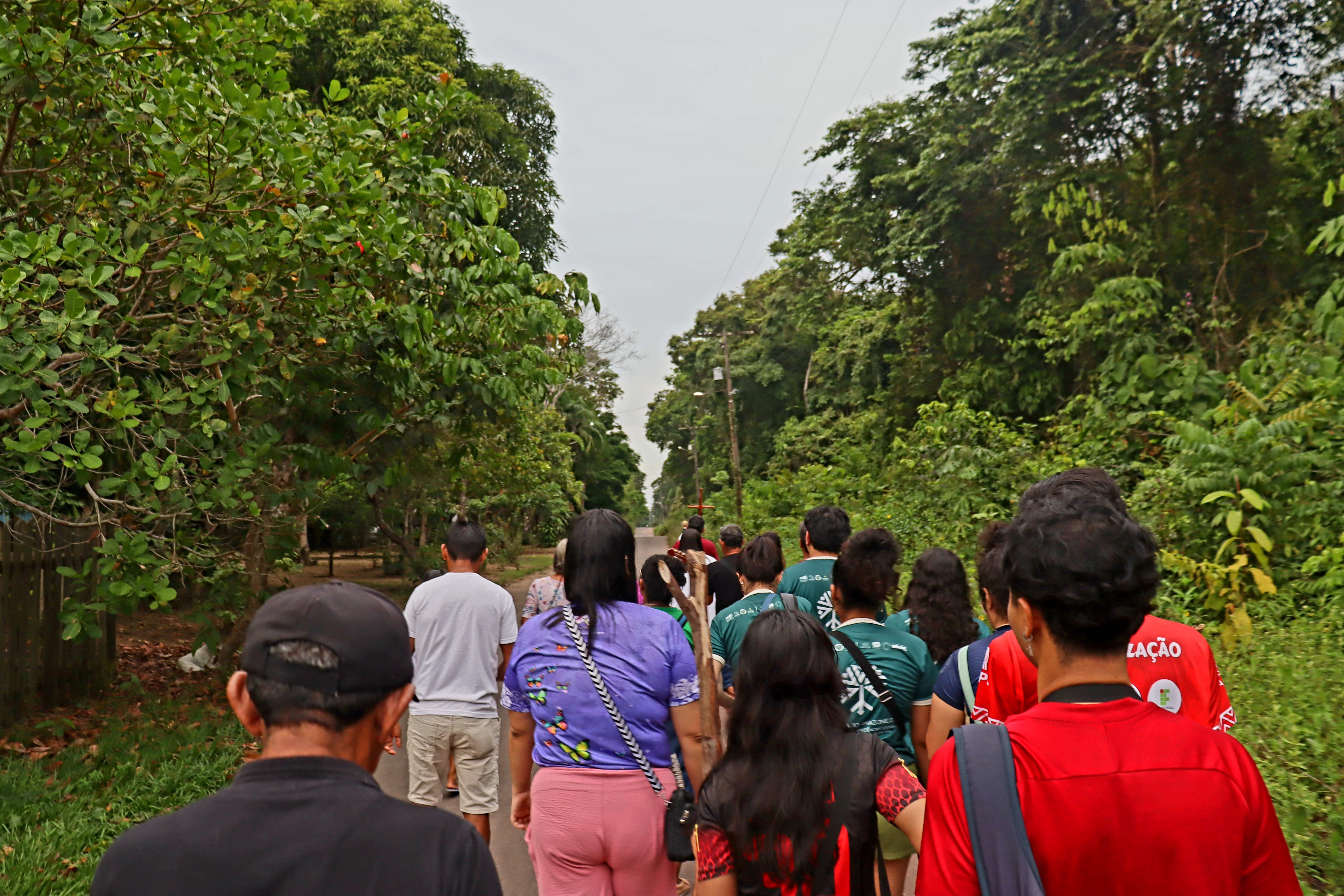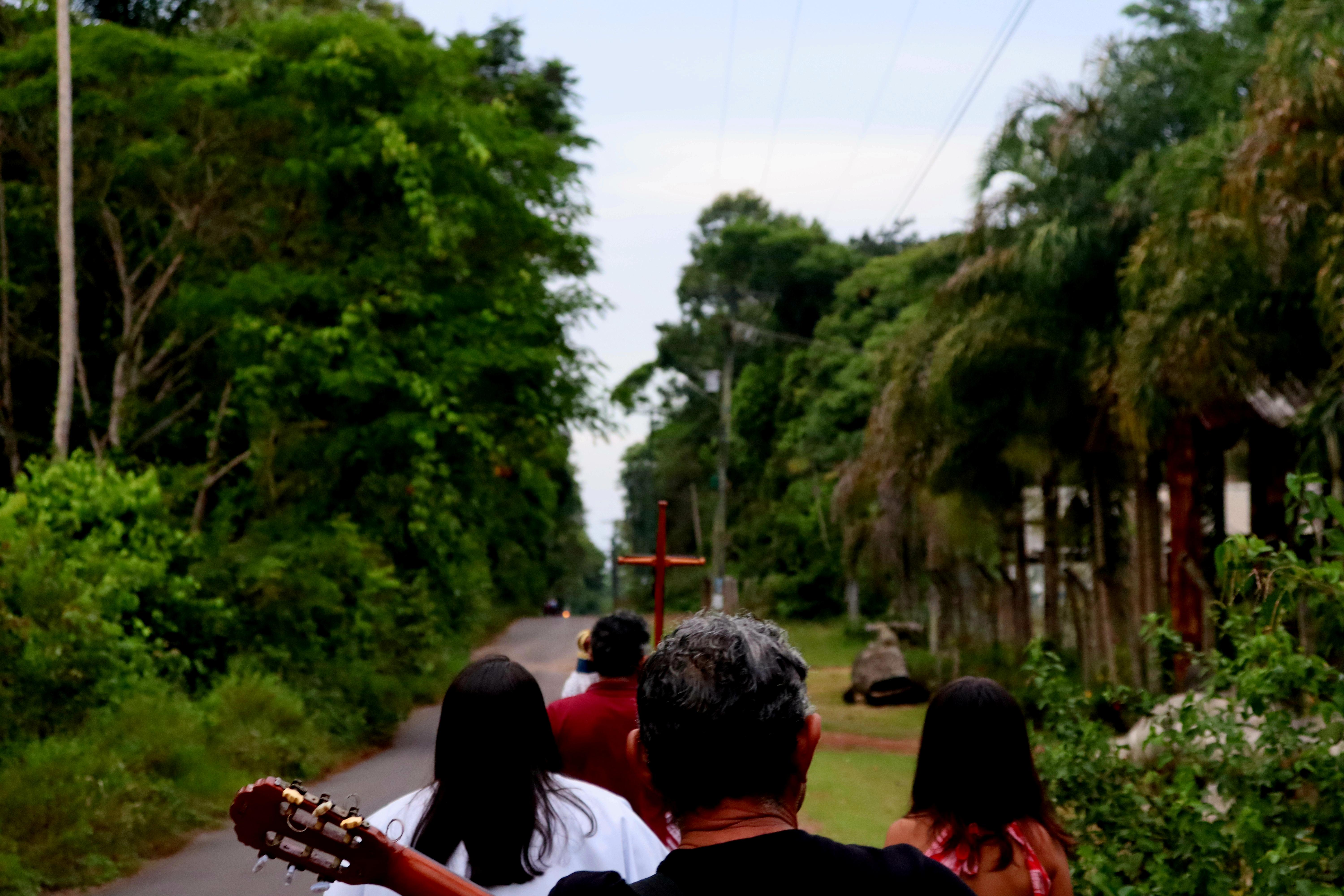 Já pela parte da tarde, a equipe acompanhou a procissão devota de Nossa Senhora Aparecida, realizada por membros da comunidade, que é predominantemente católica. A procissão saiu da Igreja Sagrado Coração de Jesus, localizada próximo a Associação Quilombola, e percorreu o ramal da comunidade.